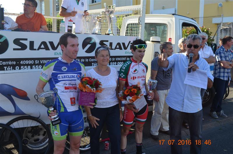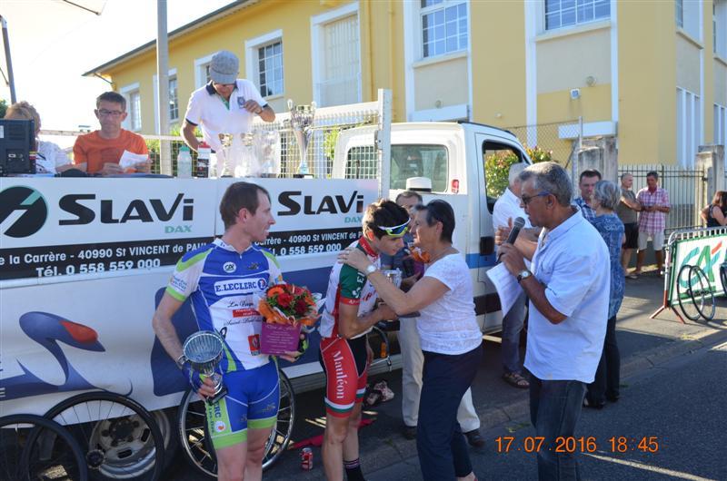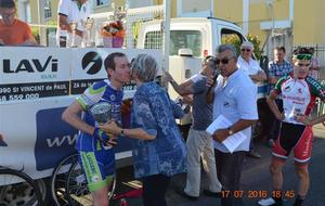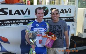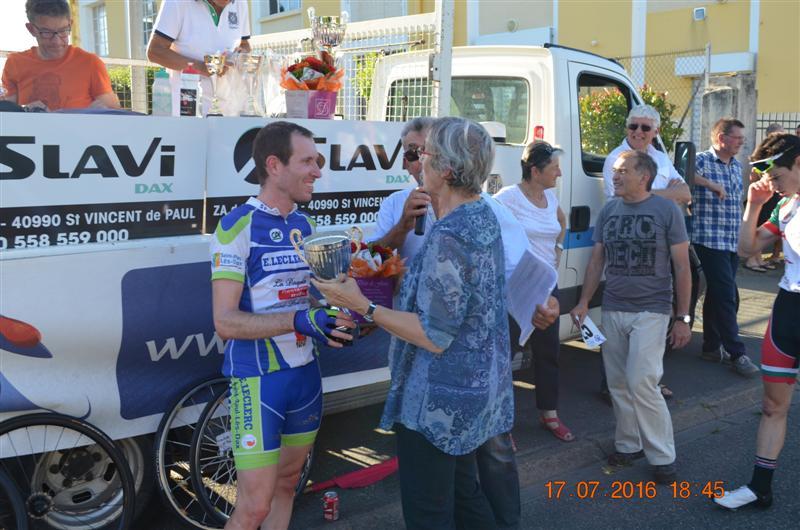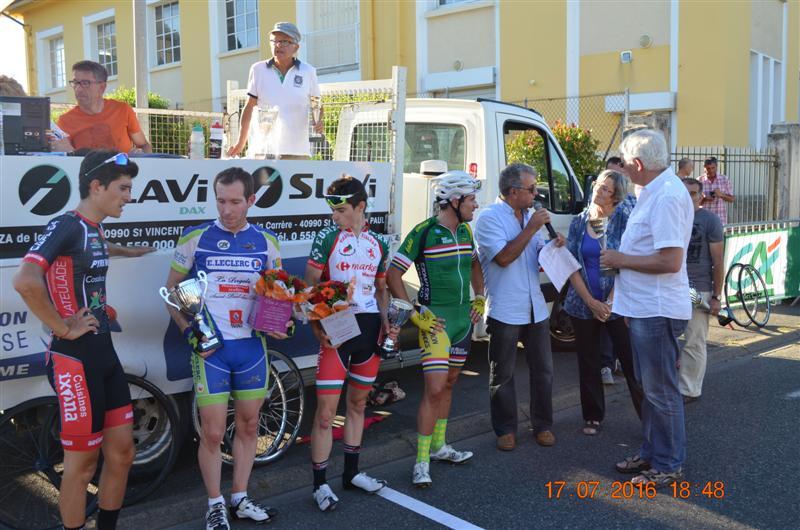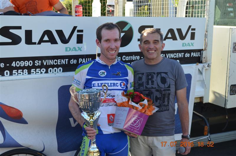 Exceptionnel, magnifique! Lionel SUHUBIETTE vainqueur de ce grand prix cycliste des fêtes de Saint Paul Lés Dax et Meilleur Sprinter de cette course.