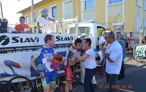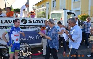Remise de la coupe et du bouquet par Madame le Maire, Cathy DELMON et Françette CANDAU adjointe, déléguée aux sports.
