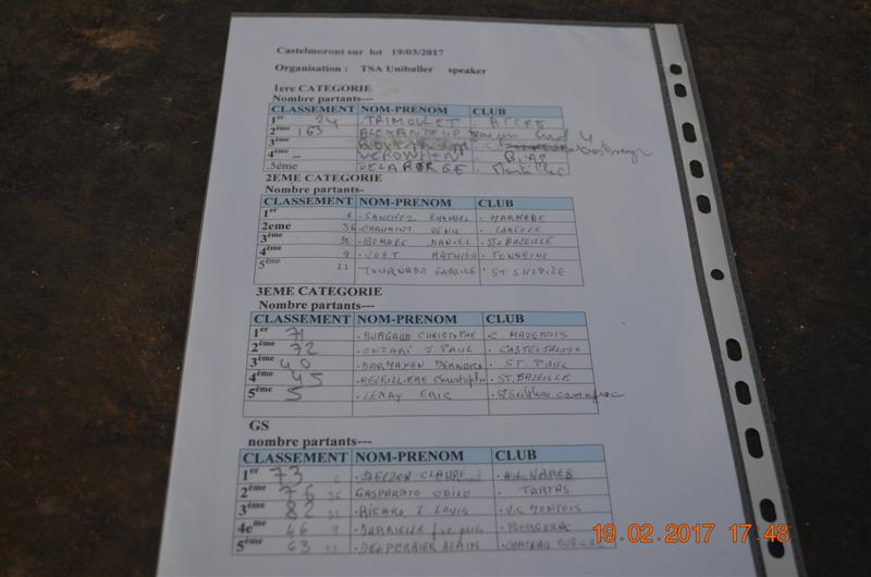 En deuxième CAT: SANCHEZ Emanuel (Marmande).2ème; CHAUMONT Denis (La Réole) .3ème: BORDE Daniel (Ste.Bazeille).